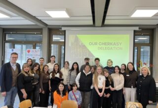 Einen besonderen und bewegenden Besuch durfte das Gymnasium Borghorst in dieser Woche erleben: Im Rahmen der Solidaritätspartnerschaft des Kreises Steinfurt mit der ukrainischen Stadt Tscherkassy besuchten uns am 12.03.2026 sechs Schülerinnen und Schülern in Begleitung von Frau Iryna Semenenko, Leiterin des Departments für Internationale Beziehungen in Tscherkassy.