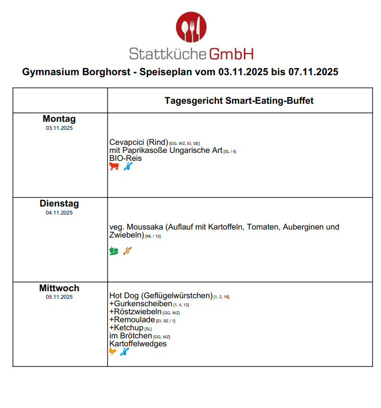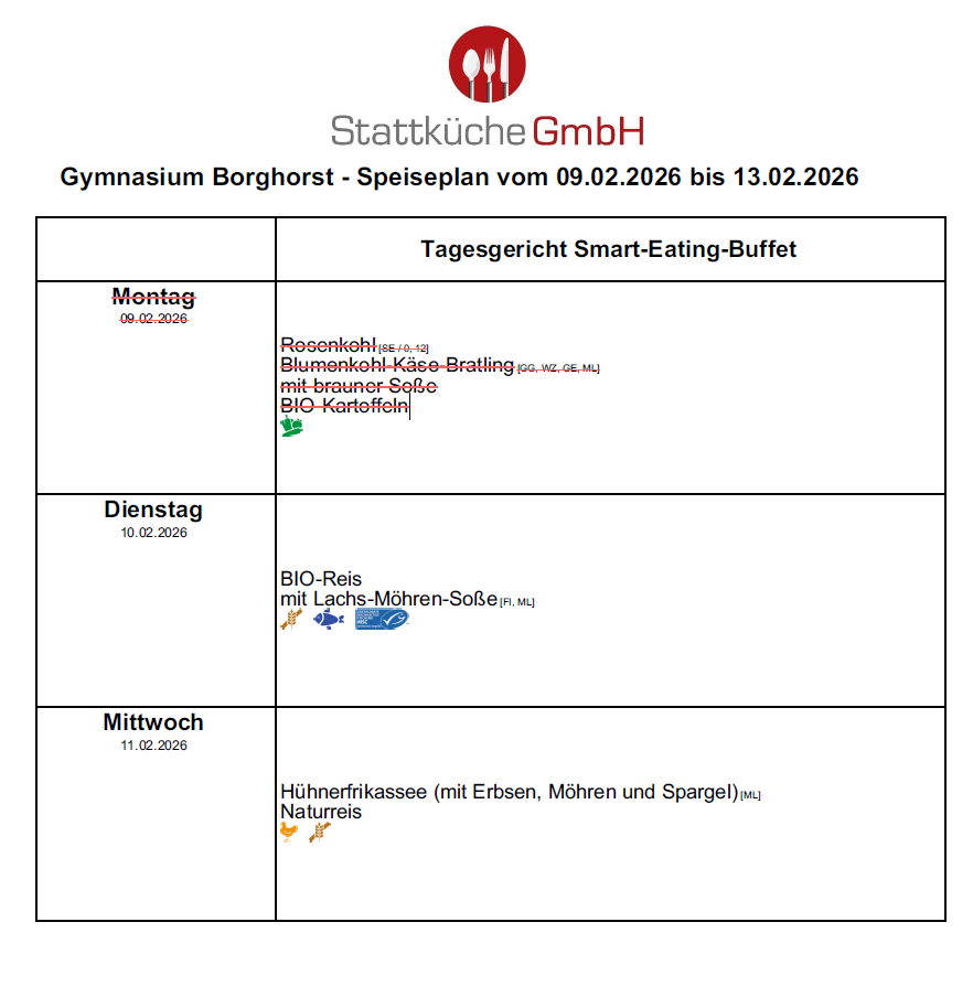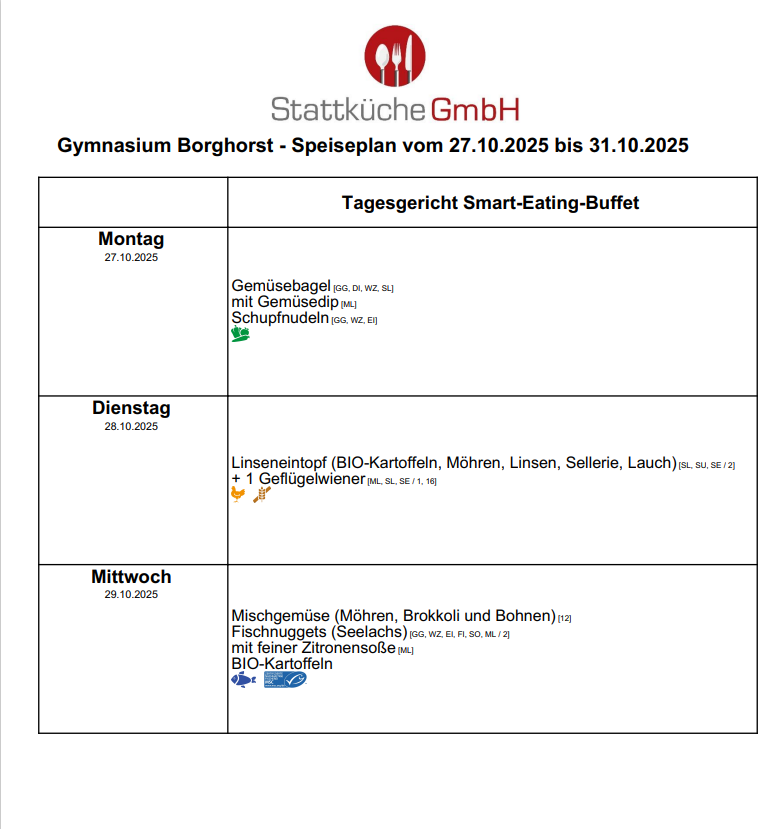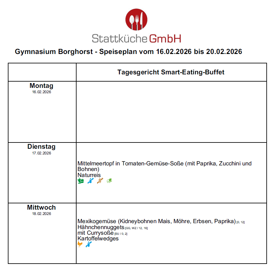 Auf dieser Seite finden Sie den aktuell gültigen Speiseplan der Mensa.